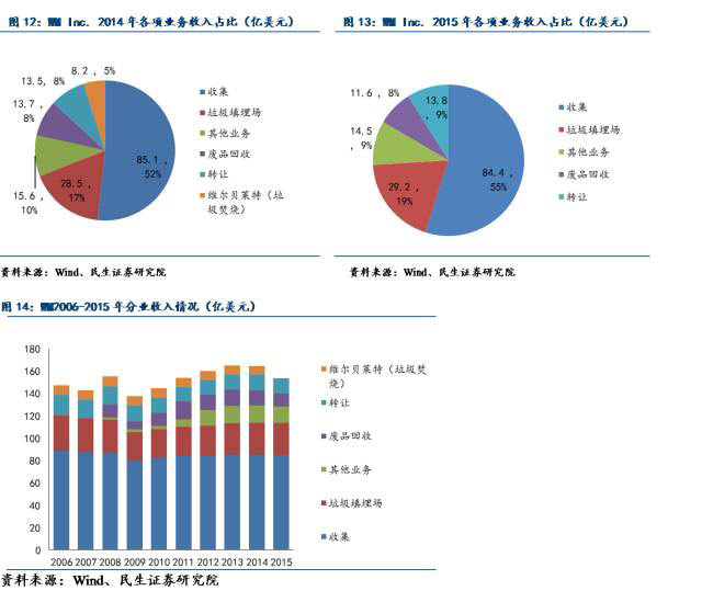 據(jù)公司2015年年報披露,于法國當(dāng)?shù)兀就ㄟ^垃圾收集、運(yùn)輸以及處理所簽署的訂單合同預(yù)計累計收益達(dá)到了1.29億美元,在歐洲其他國家簽訂相關(guān)合同預(yù)計累計收益可達(dá)9.83億美元。